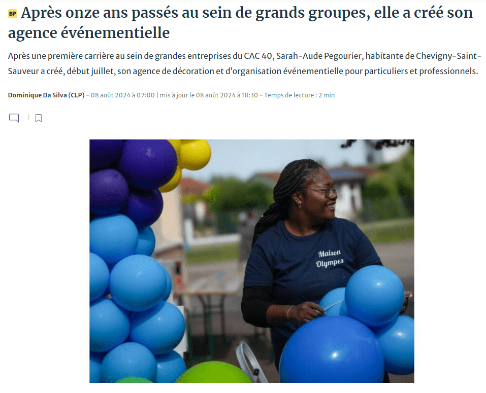 Je suis Sarah-Aude PEGOURIÉ, fondatrice de l’agence Maison Olympes Événementiel.